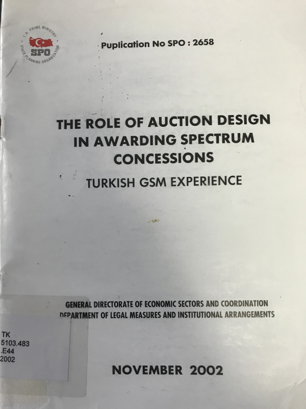 The Role of auction design in awarding spectrum concessions: Turkish GSM experience / Uğur Emek.