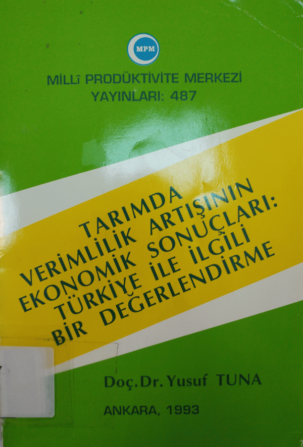 Tarımda verimlilik artışının ekonomik sonuçları:Türkiye ile ilgili bir değerlendirme / Yusuf Tuna.