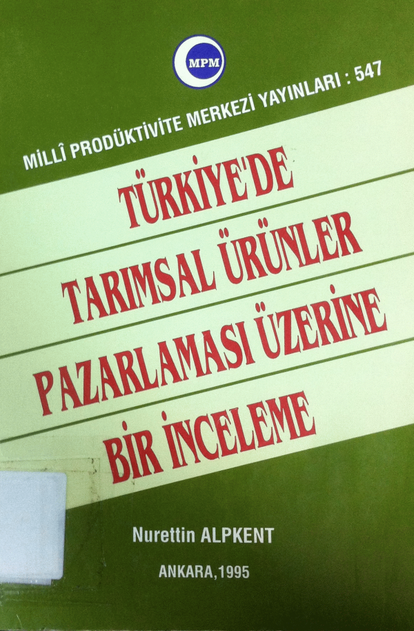 Türkiye'de tarımsal ürünler pazarlaması üzerine bir inceleme / Nurettin Alpkent