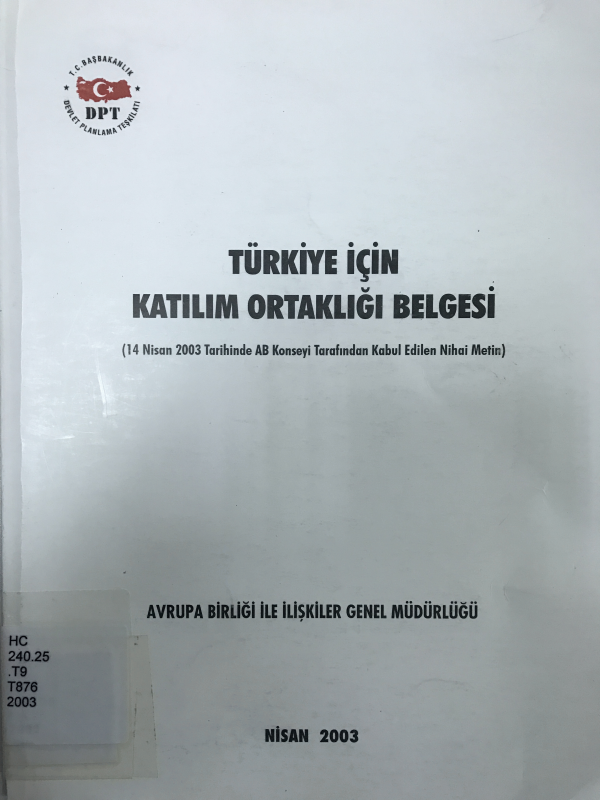 Türkiye için katılım ortaklığı belgesi: 14 Nisan 2003 tarihinde AB konseyi tarafından kabul edilen nihai metin.