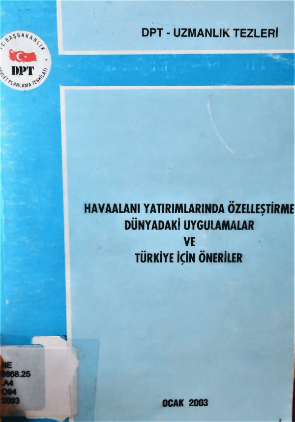 Havaalanı yatırımlarında özelleştirme dünyadaki uygulamalar ve Türkiye için öneriler / Cem Galip Özenen.