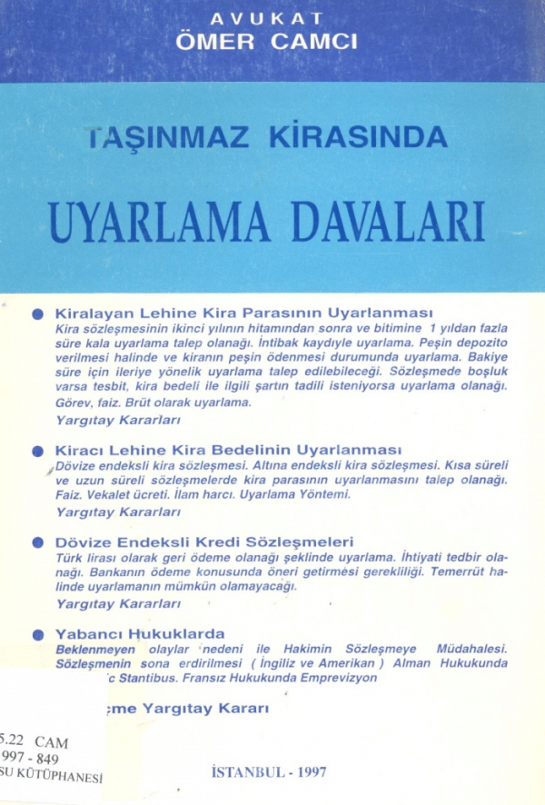Taşınmaz kirasında uyarlama davaları / Ömer Camcı.
