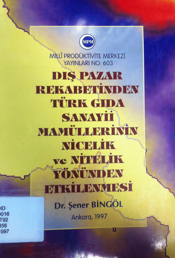 Dış pazar rekabetinde Türk gıda sanayii mamüllerinin nicelik ve nitelik yönünden etkilenmesi / Şener Bingöl