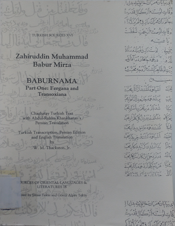 Baburname: Çağatayca aslı.Abdurrahim Hanhanan'ın Farsça tercümesi ve ingilizcesi / Zahirüddin Muhammed Babur Mirza; hazırlayan W.M.Thackston;Yay.Şinasi Tekin ve Gönül Alpay Tekin.