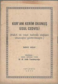 Kur'anı Kerim okunuş usul cedveli : (vakıf ve vasıl halinde değişen okunuşlar gösterilmiştir) / hazırlayan H. Hafız Salih Tanrıbuyruğu.