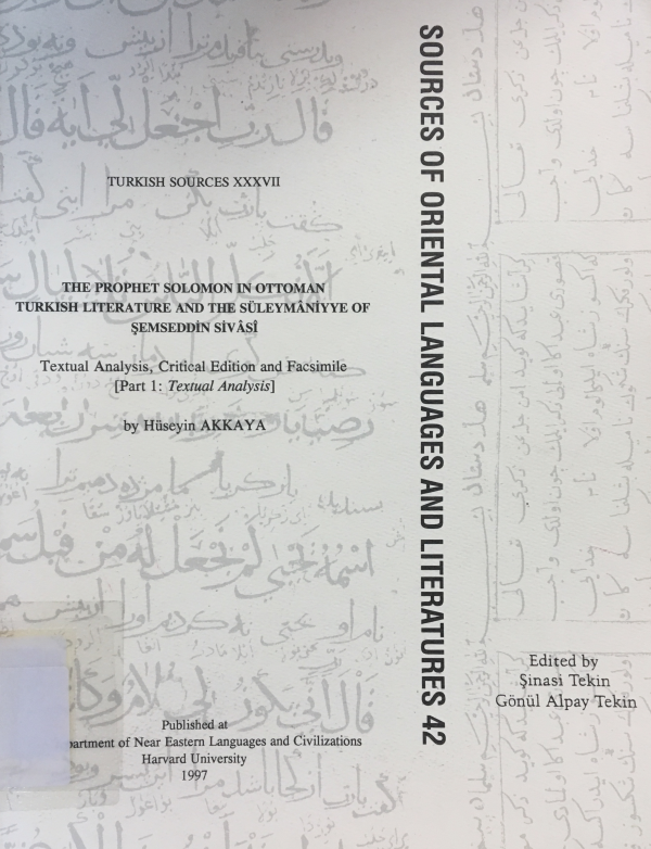 Osmanlı Türk edebiyatında Süleyman Peygamber ve Şemseddin Sivasi'nin Süleymaniyyesi/ Hüseyin Akkaya; yayınlayanlar; Şinasi Tekin, Gönül Alpay Tekin.
