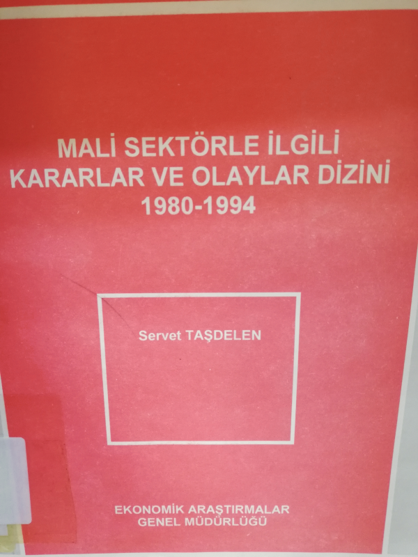 Mali sektörle ilgili kararlar ve olaylar dizini : 1980-1994 / Servet Taşdelen.