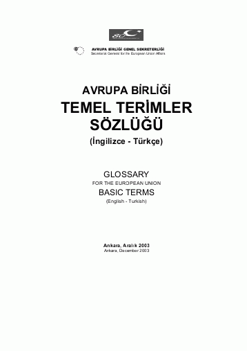 - Glossary for the European Union basic terms (English-Turkish)