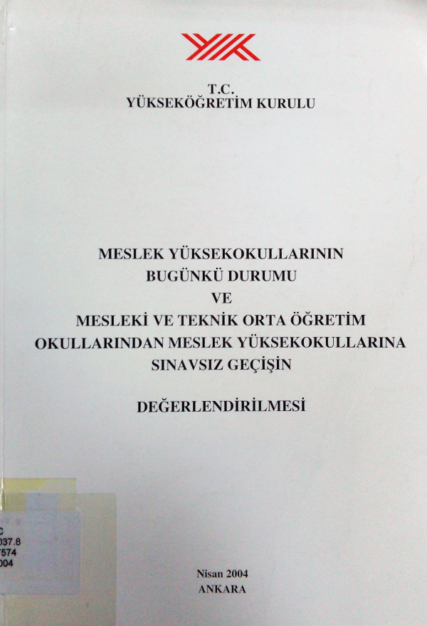 Meslek yüksekokullarının bugünkü durumu ve mesleki ve teknik orta öğretim okullarından meslek yüksekokullarına sınavsız geçişin değerlendirilmesi.