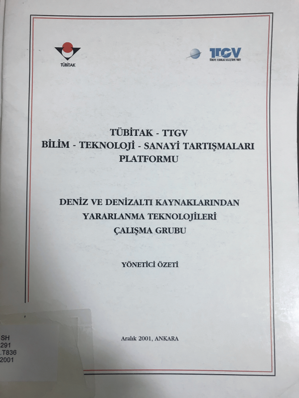 TÜBİTAK-TTGV-Bilim-Teknoloji-Sanayi Tartışmaları Platformu : Deniz ve denizaltı kaynaklarından yararlanma teknolojileri çalışma grubu / TÜBİTAK-TTGV.