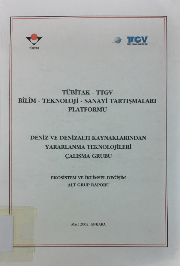 TÜBİTAK-TTGV-Bilim-Teknoloji-Sanayi Tartışmaları Platformu : Deniz ve denizaltı kaynaklarından yararlanma teknolojileri çalışma grubu : ekosistem ve iklimsel değişim alt grup raporu / TÜBİTAK-TTGV.