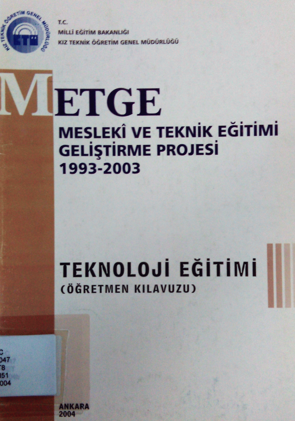 METGE mesleki ve teknik eğitimi geliştirme projesi 1993-2003: teknoloji eğitimi (öğretmen kılavuzu)/ hazırlayan Gülgün Bangir.