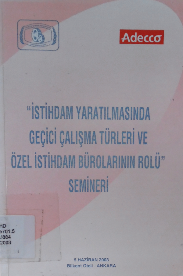 İstihdam yaratılmasında geçici çalışma türleri ve özel istihdam bürolarının rolü semineri, 5 Haziran 2003 Bilkent Oteli - Ankara.