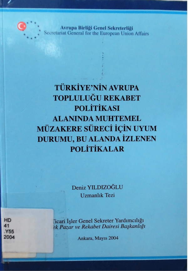 Türkiye'nin Avrupa Topluluğu rekabet politikası alanında muhtemel müzakere süreci için uyum durumu, bu alanda izlenen politikalar / haz. Deniz Yıldızoğlu.