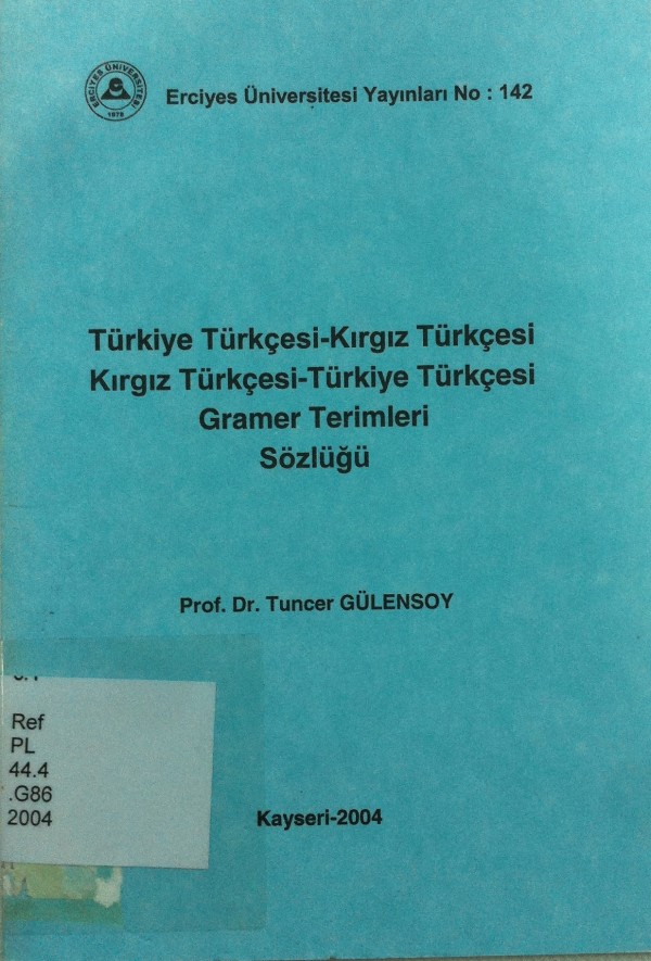 Türkiye Türkçesi - Kırgız Türkçesi Kırgız Türkçesi - Türkiye Türkçesi gramer terimleri sözlüğü / Haz.Tuncer Gülensoy.