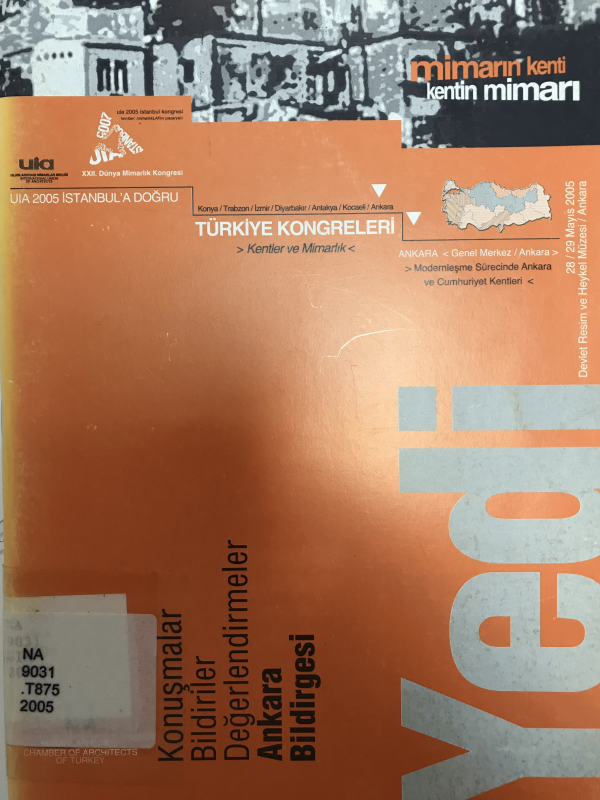 Dil: Türkçe Yayıncı: Ankara: Mimarlar Odası, 2005Tanım: 48 pages ; 22 cmİçerik türü:- text