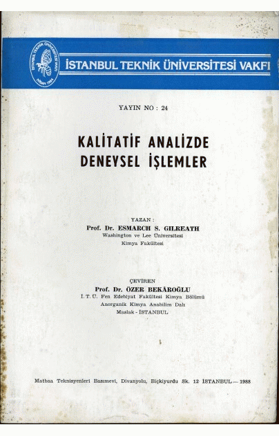 Kalitatif analizde deneysel işlemler / Esmarch S.Gilreath ;çev.Özer Bekaroğlu