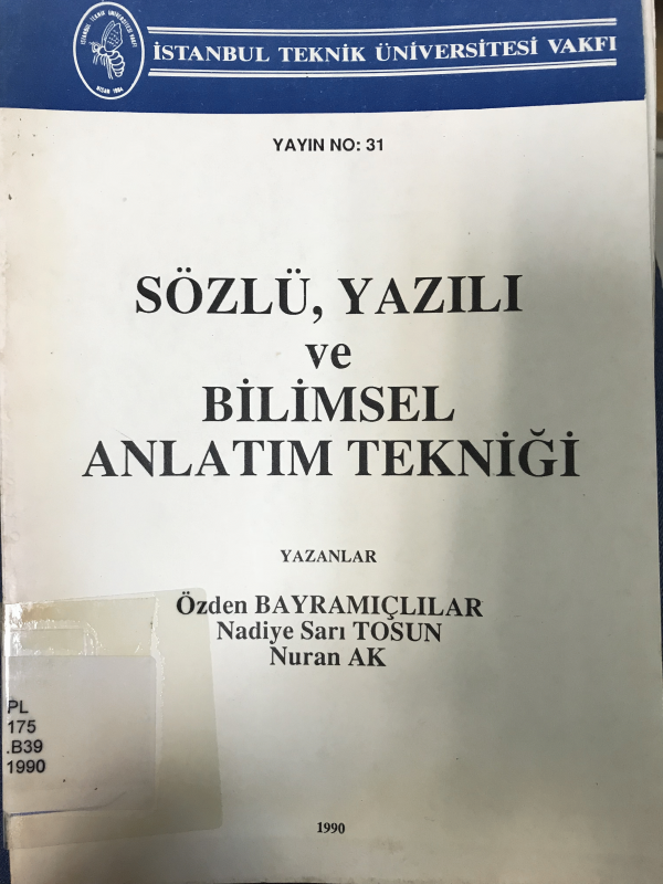Sözlü, yazılı ve bilimsel anlatım tekniği / Özden Bayramıçlılar, Nuran Ak, Nadiye Sarıtosun.