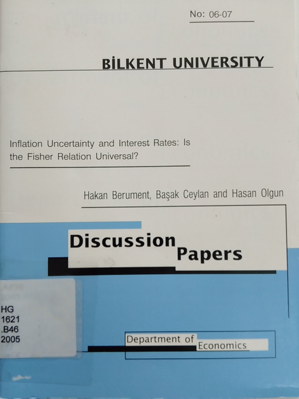 Inflation uncertainty and interest rates: is the fisher relation universal? / Hakan Berument ; Nildag Basak Ceylan, Hasan Olgun.