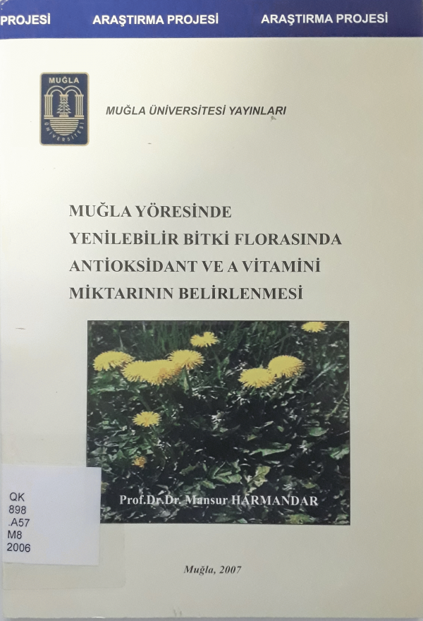 Muğla yöresinde yenilebilir bitki florasında antioksidant ve A vitamini miktarının belirlenmesi / proje yürütücüsü Mansur Harmandar, M. Emin Duru, Bendegül Aras Okumuş...at al.