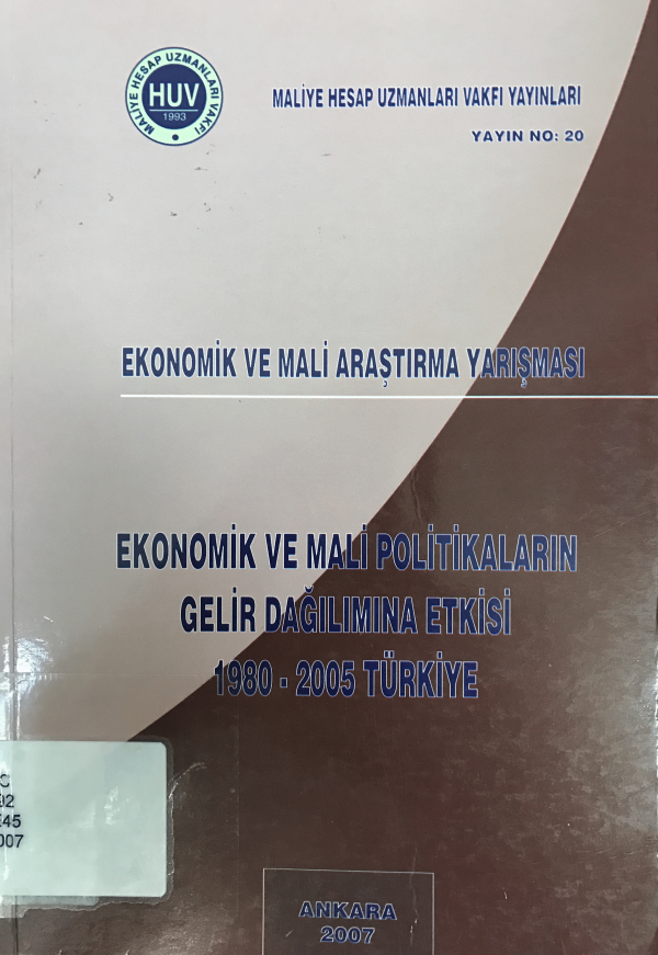 Ekonomik ve mali politikaların gelir dağılımına etkisi 1980-2005 Türkiye / Maliye Hesap Uzmanları Vakfı.