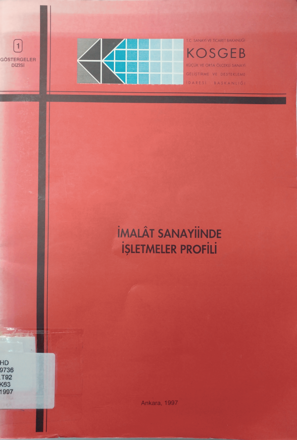 Dil: Türkçe Yayıncı: Ankara : KOSGEB, [1997]Telif hakkı tarihi:©1997Tanım: 99 pages : illustrations ; 29 cmİçerik türü:- text