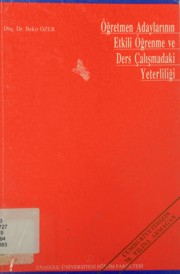 Öğretmen adaylarının etkili öğrenme ve ders çalışmadaki yeterliliği / Bekir Özer.