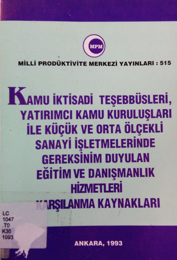 Kamu iktisadi teşebbüsleri, yatırımcı kamu kuruluşları ile küçük ve orta ölçekli sanayi işletmelerinde gereksinim duyulan eğitim ve danışmanlık hizmetleri karşılanma kaynakları.