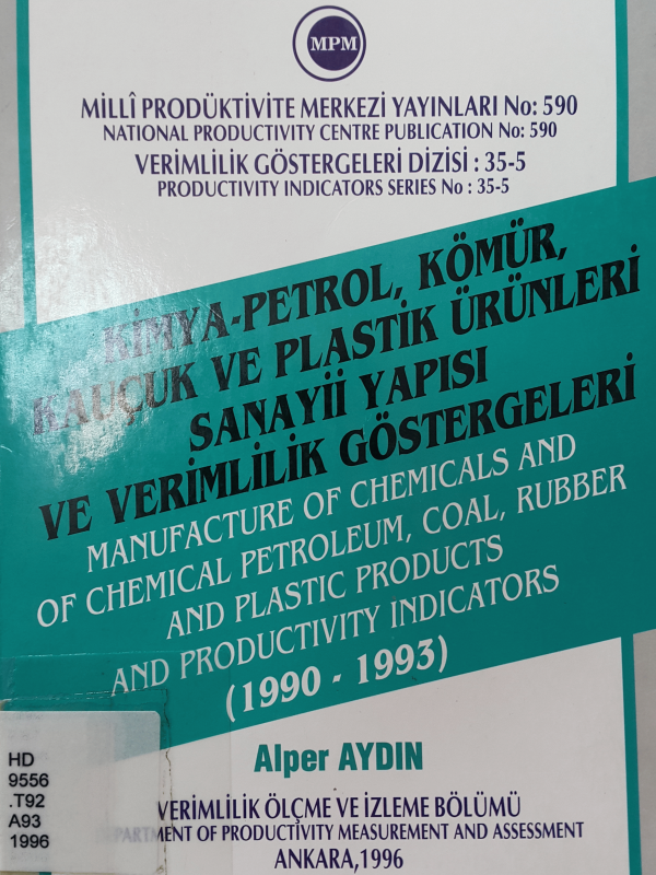 Kimya-petrol, kömür, kauçuk ve plastik ürünleri sanayii yapısı ve verimlilik göstergeleri: 1990-1993 / Alper Aydın.