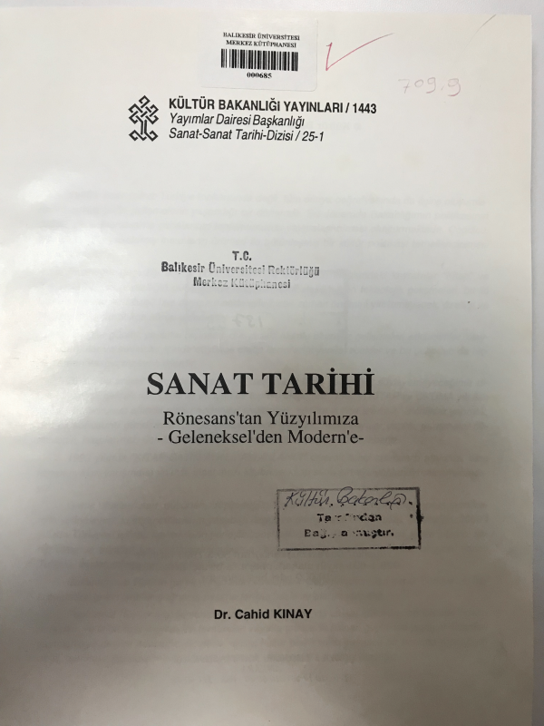 Sanat tarihi : Rönesans'tan yüzyılımıza geleneksel'den modern'e / Cahid Kınay.