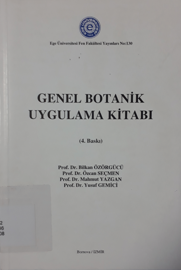 Genel botanik uygulama kitabı/ Bilkan Özörgücü, Özcan Seçmen, Mahmut Yazgan, Yusuf Gemici