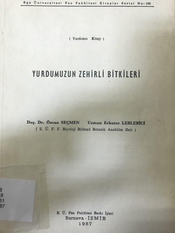 Yurdumuzun zehirli bitkileri: (Yardımcı kitap)/ Özcan Seçmen, Erkuter Leblebici.