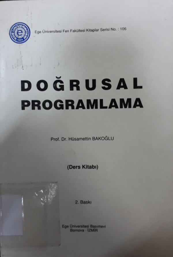 Doğrusal programlama: (ders kitabı)/ Hüsamettin Bakoğlu.