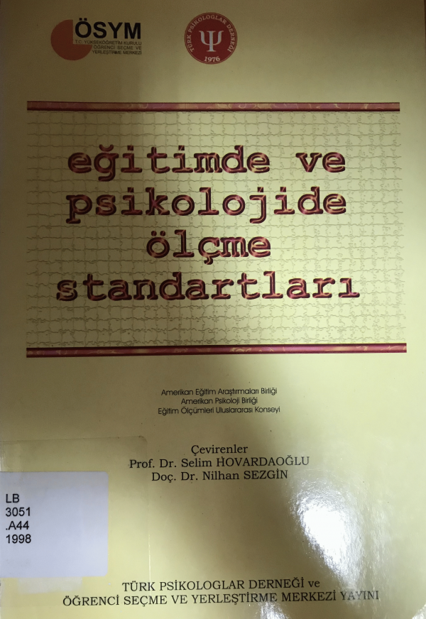 Eğitimde ve psikolojide ölçme standartları / çevirenler Selim Hovardaoğlu, Nilhan Sezgin.