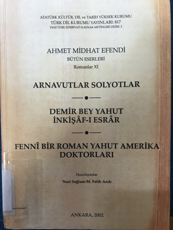 Arnavutlar solyotlar : Demir Bey yahut İnkişaf-ı esrar : Fenni bir roman yahut Amerika doktorları / Ahmet Midhat Efendi ; hazırlayanlar, Nuri Sağlam, M. Fatih Andı.