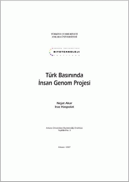 Türk basınında insan genom projesi / Prof. Dr. Nejat Akar Ankara Üniversitesi Biyoteknoloji Enstitüsü, Uz. Iraz Haspolat Ankara Üniversitesi Biyoteknoloji Enstitüsü.