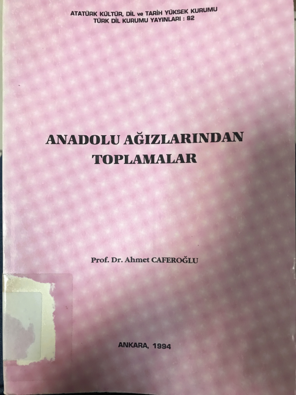 Anadolu ağızlarından toplamalar: Kastamonu, Çankırı, Amasya, Niğde, İlbaylıkları ağızları, kalaycı argosu ve geygelli yürüklerinin gizli dili / Prof. Dr. Ahmet Caferoğlu.