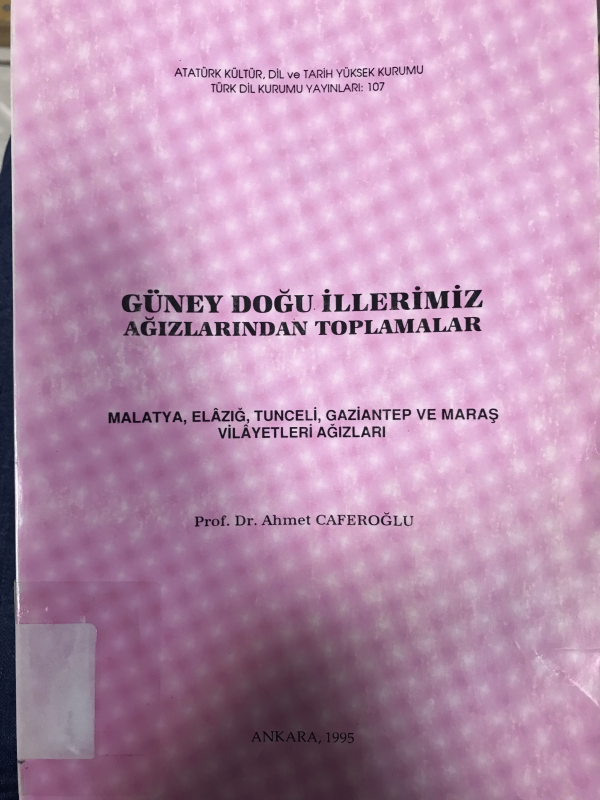 Güney Doğu illerimiz ağızlarından toplamalar : Malatya, Elazığ, Tunceli, Gaziantep ve Maraş vilayetleri ağızları / Ahmet Caferoğlu.