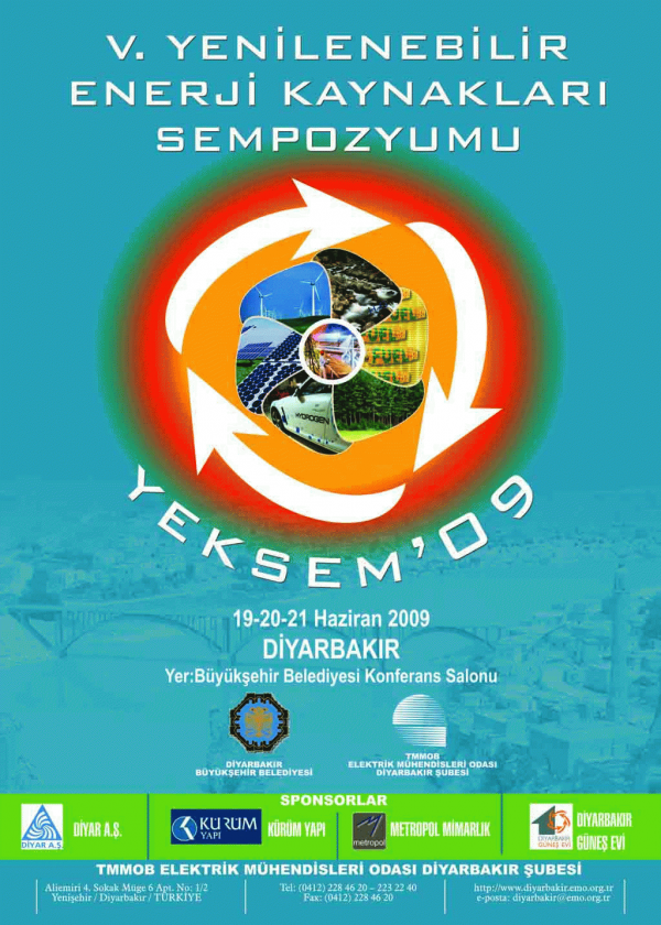 YEKSEM'09: V. Yenilebilir enerji kaynakları sempozyumu, bildiriler kitabı, 19-20-21 Haziran 2009-Diyarbakır / TMMOB Elektrik Mühendisleri Odası, Diyarbakır Büyükşehir Belediyesi.