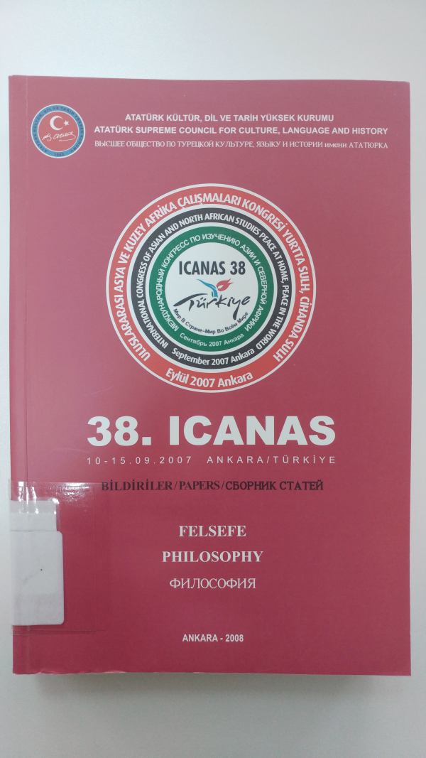 Uluslararası Asya ve Kuzey Afrika Çalışmaları Kongresi : bildiriler : felsefe = International Congress of Asian and North African Studies : papers : philosophy / yayına hazırlayanlar Zeki Dilek... [and others].