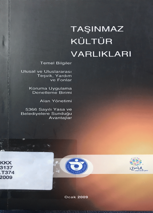Taşınmaz kültür varlıkları : temel bilgiler, ulusal ve uluslararası teşvik, yardım ve fonlar, koruma uygulama denetleme birimi, alan yönetimi, 5366 sayılı yasa ve belediyelere sunduğu avantajla r/ İzmir Ticaret Odası... [and others].