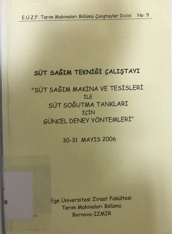 Süt sağım tekniği çalıştayı : ''Süt sağım makina ve tesisleri ile süt soğutma tankları için güncel deney yöntemleri" 30-31 Mayıs 2006.