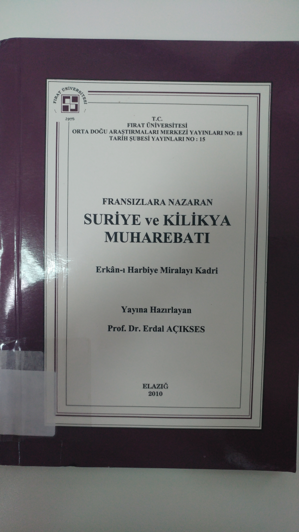 Fransızlara nazaran Suriye ve Kilikya muharebatı / Erkan-ı Harbiye Miralayı Kadri ; yayına hazırlayan Erdal Açıkses.