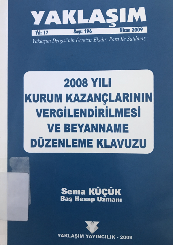 2008 yılı kurum kazançlarının vergilendirilmesi ve beyanname düzenleme kılavuzu/ Sema Küçük.