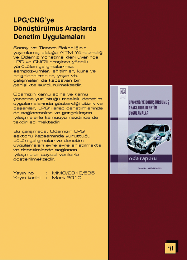 LPG/CNG'ye dönüştürülmüş araçlarda denetim uygulamaları : oda raporu/ Makina Mühendisleri odası.