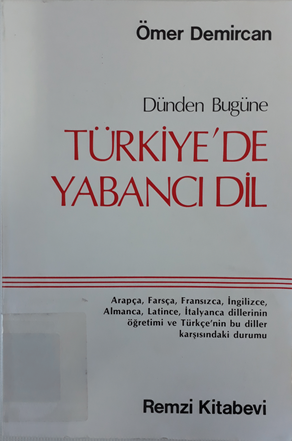 Dünden bugüne Türkiye'de yabancı dil : Arapça, Farsça, Fransızca, İngilizce, Almanca, Latince, İtalyanca-- dillerinin öğretimi ve Türkçenin bu diller karşısındaki durumu / Ömer Demircan.
