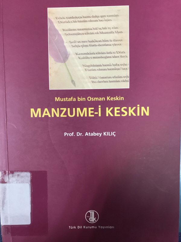 Manzume-i Keskin : Türkçe, Arapça, Farsça Manzum sözlük / Mustafa bin Osman Keskin, Atabey Kılıç.