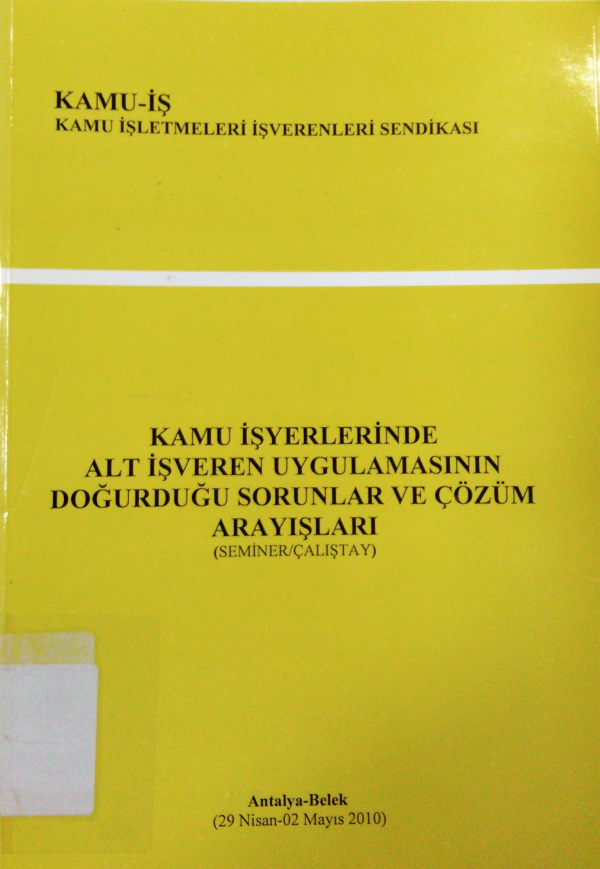 Kamu işyerlerinde alt işveren uygulamasının doğurduğu sorunlar ve çözüm arayışları (seminer/çalıştay) / Kamu-İş.