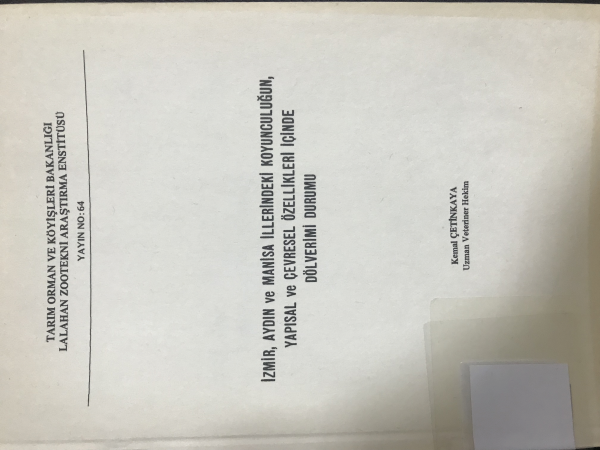 İzmir, Aydın, Manisa illerindeki koyunculuğun yapısal ve çevresel özellikleri içinde döl verimi durumu / Kemal Çetinkaya.