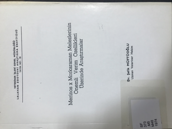 Merinos x morkaraman melezlerinin önemli verim özellikleri üzerinde araştırmalar / Şefik Müftüoğlu.
